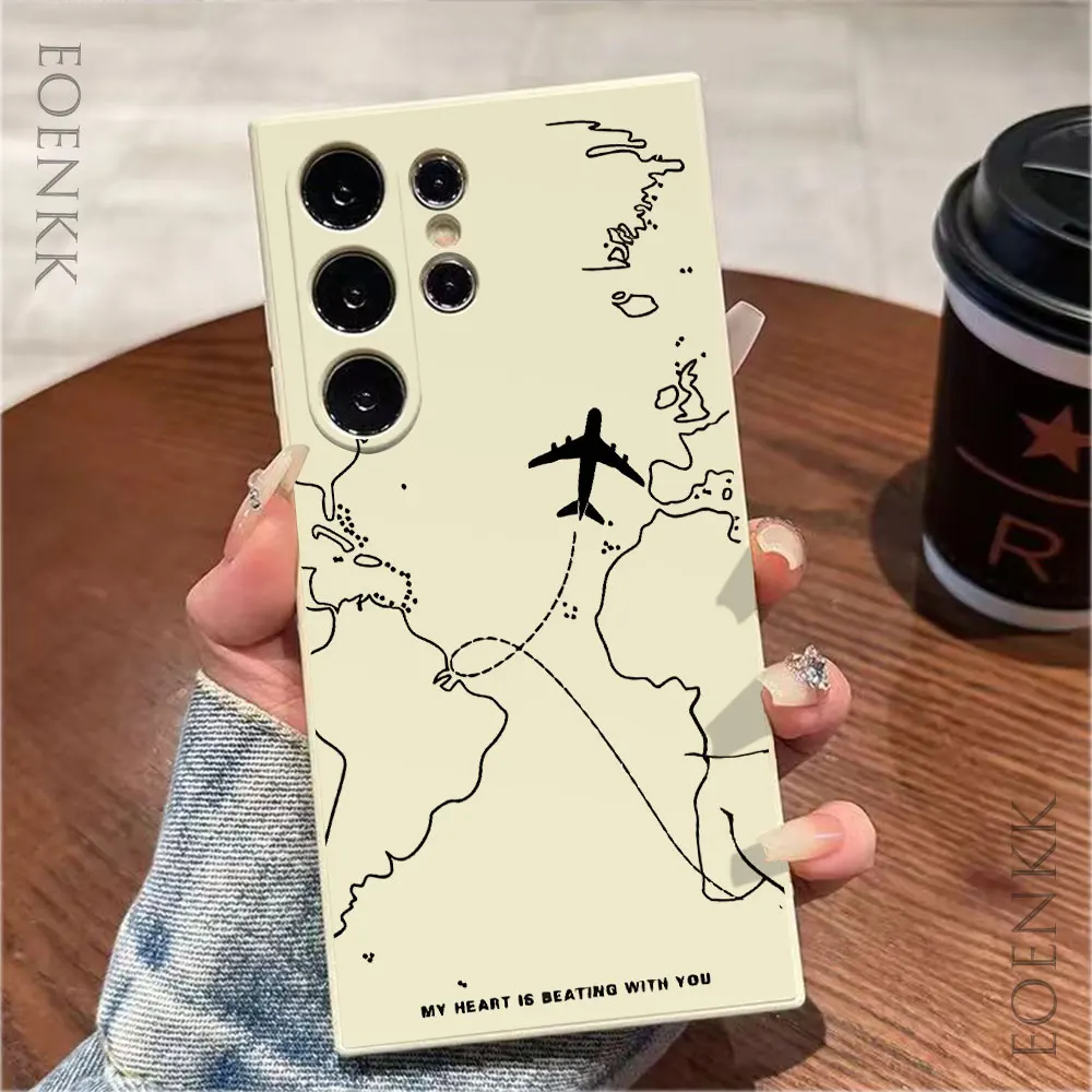 Silicone phone case with airplane route pattern for Samsung