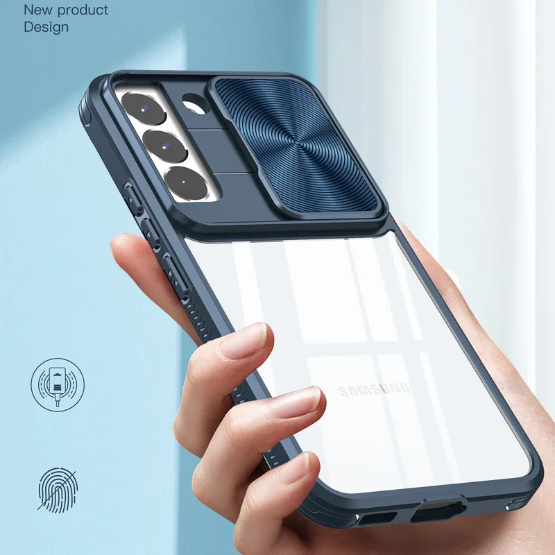 Sliding window camera transparent phone case for Samsung