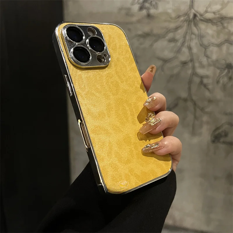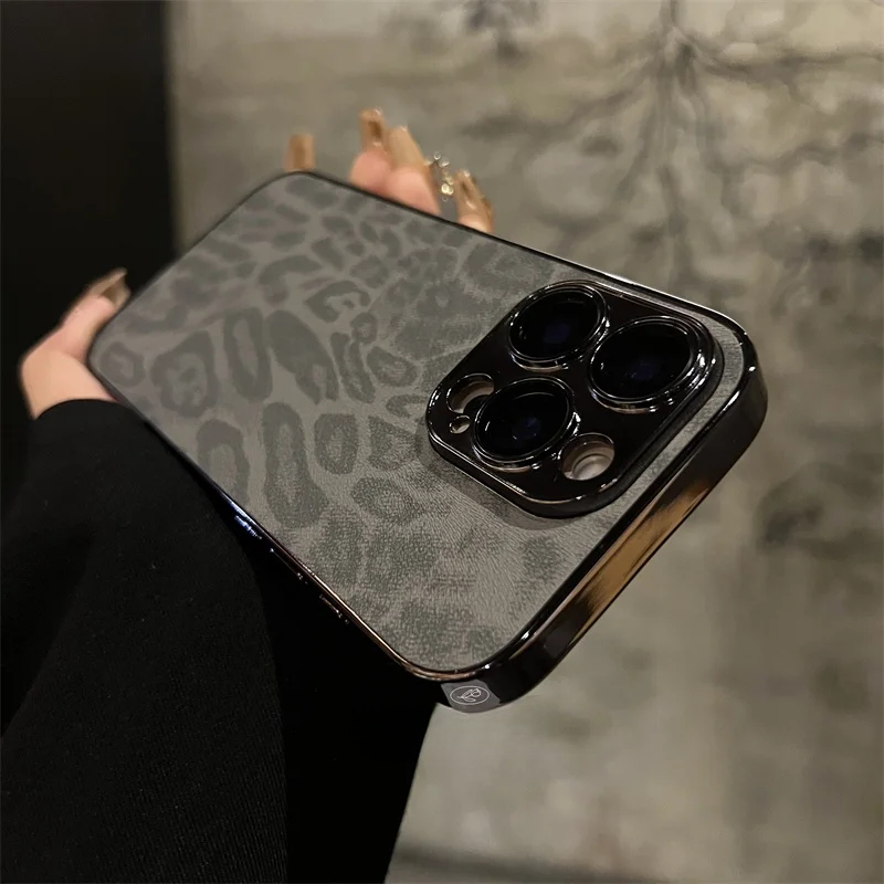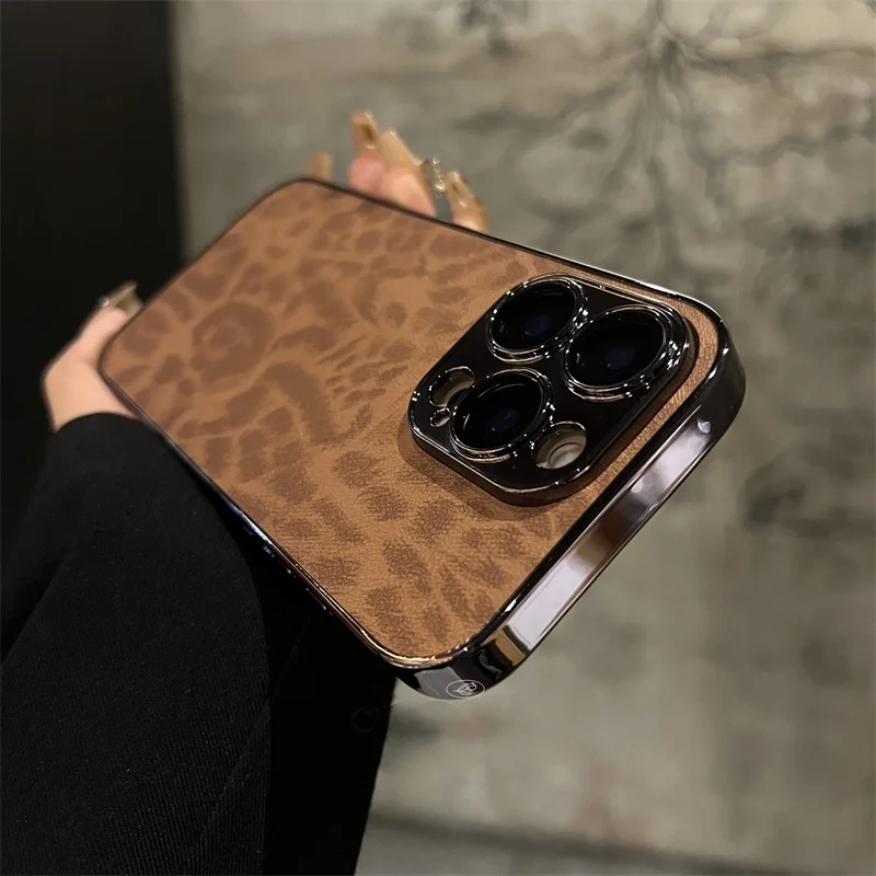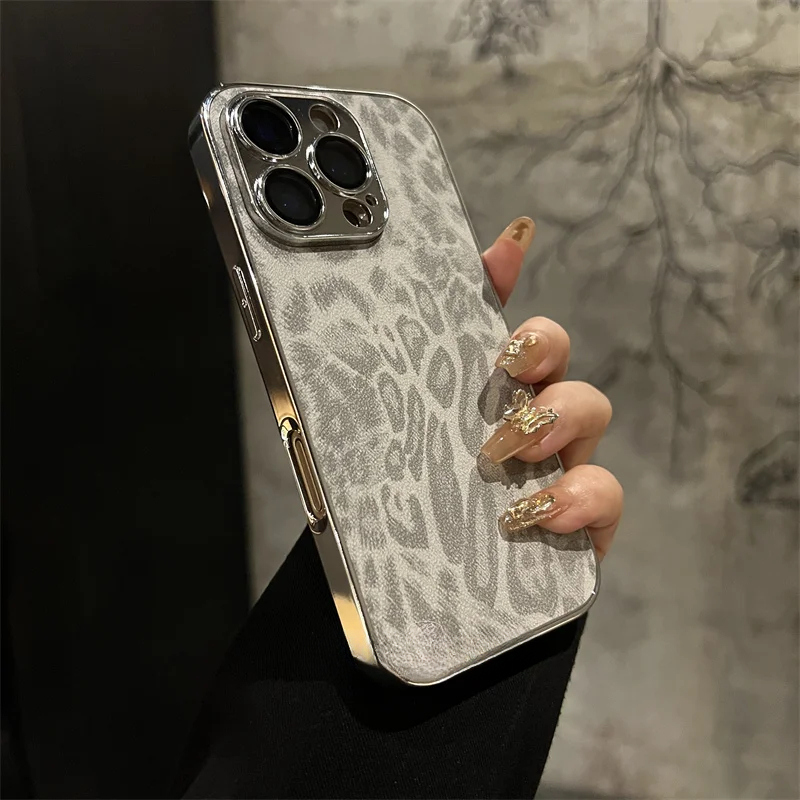 Luxury electroplated leopard print leather phone case for iPhone
