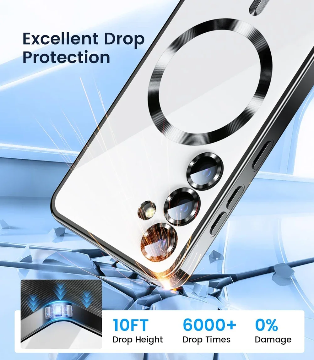 Magnetic plated transparent phone case for Samsung