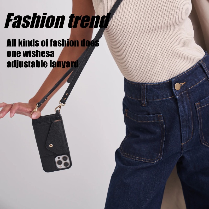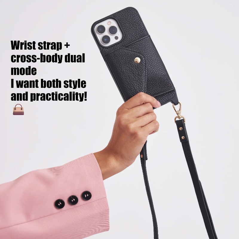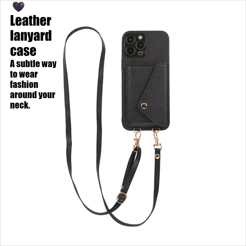 Leather Phone Case Wallet & Crossbody Strap For iPhone