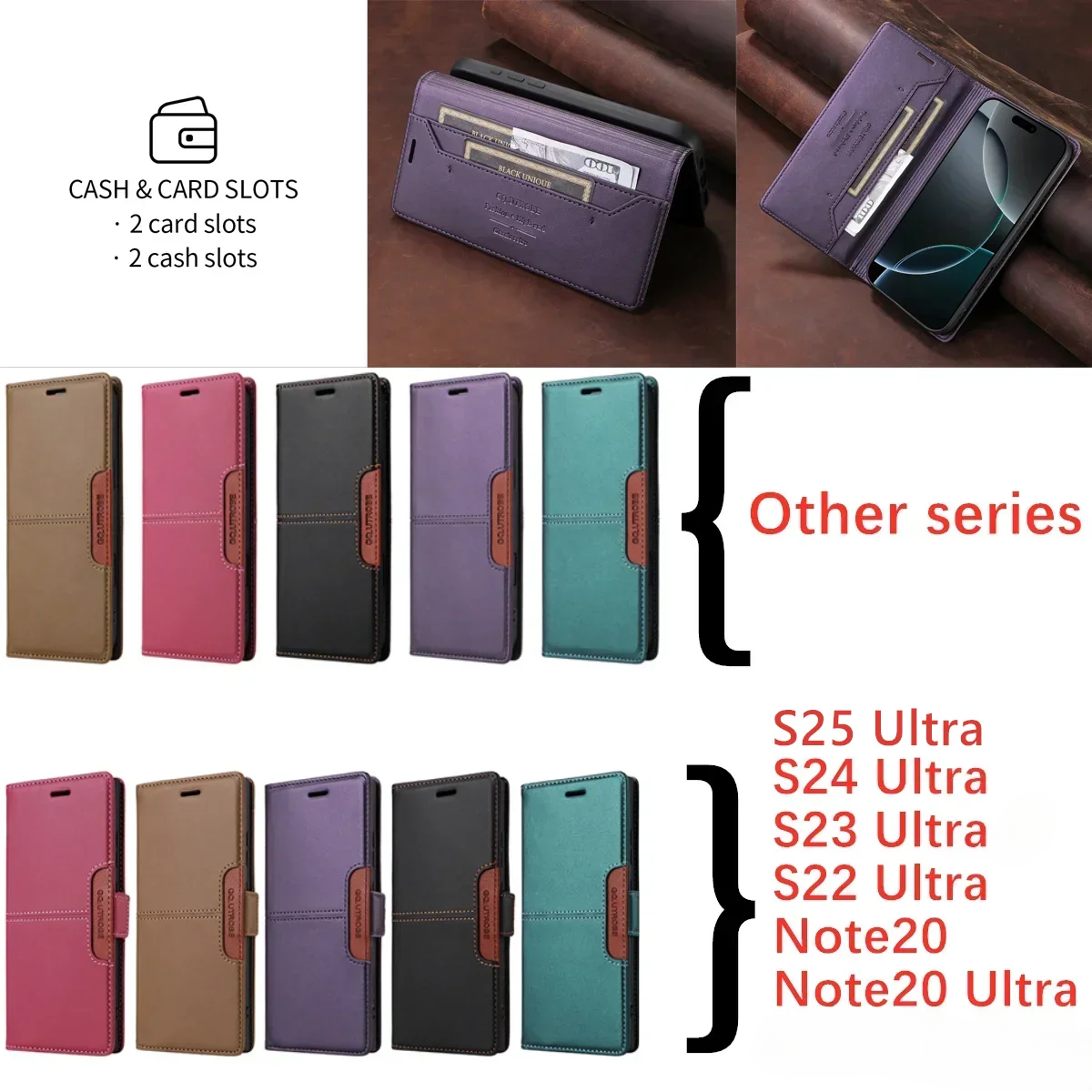 Leather Magnetic Book Wallet Case for Samsung