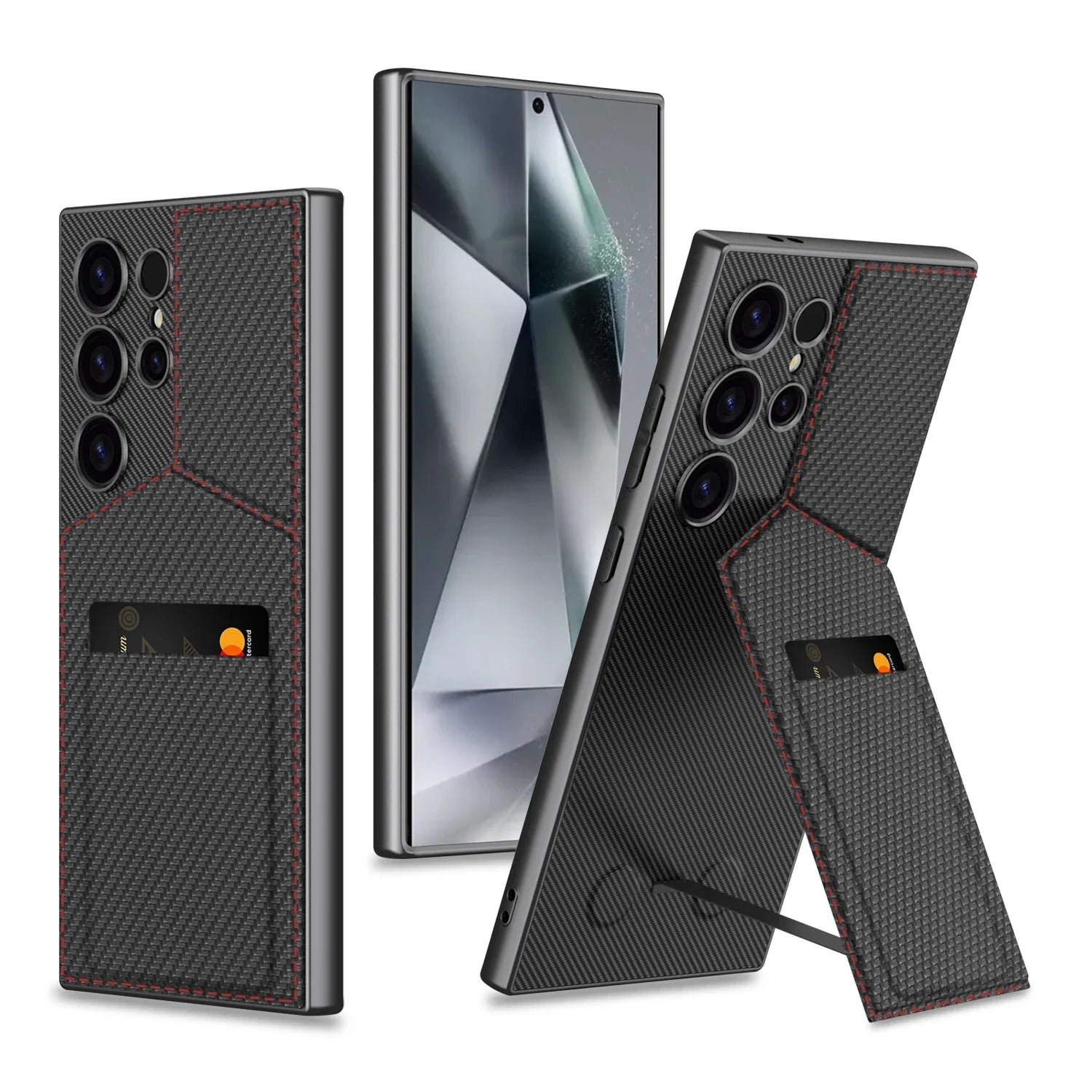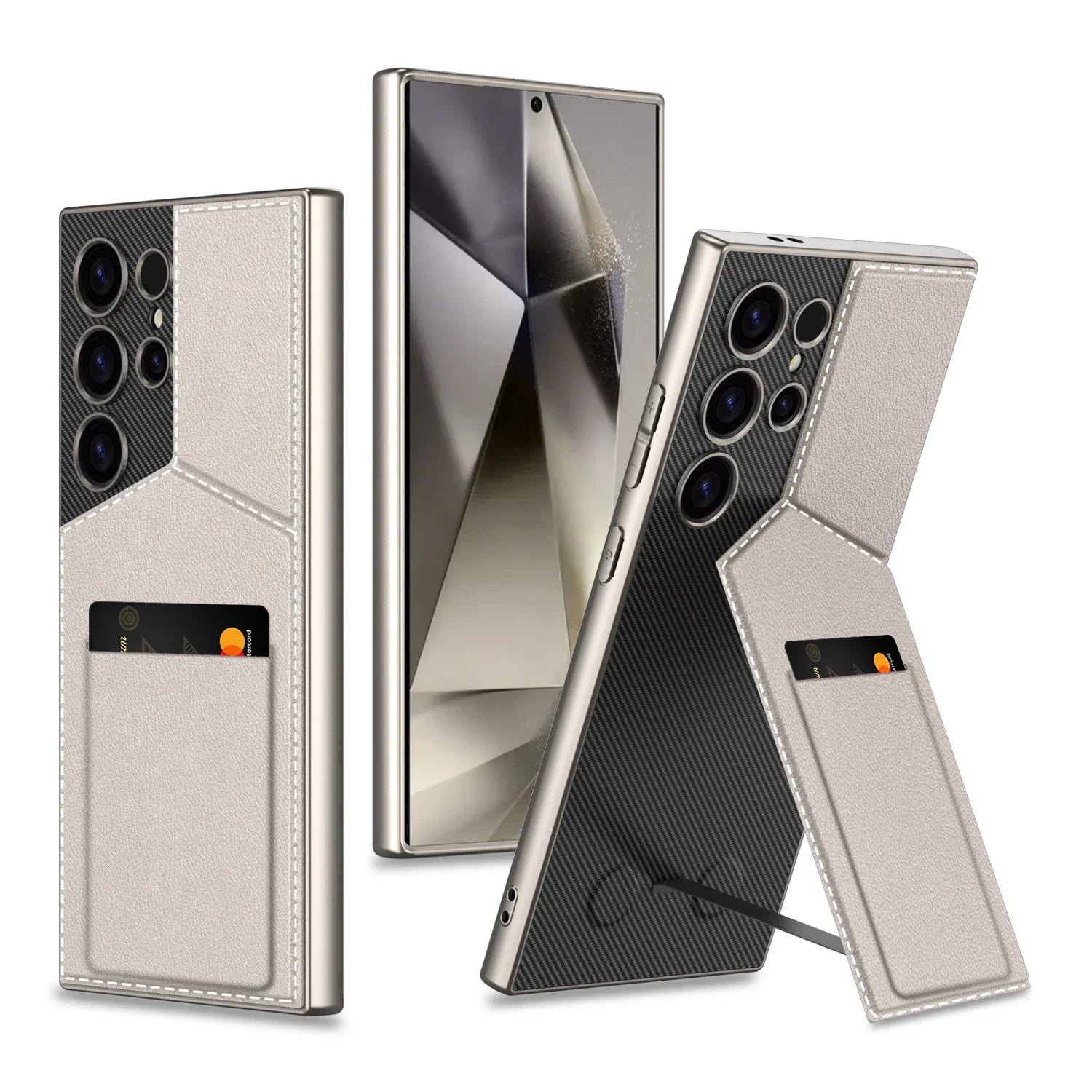 Armor Leather Card Holder with Magnetic Folding Holder for Galaxy S Series