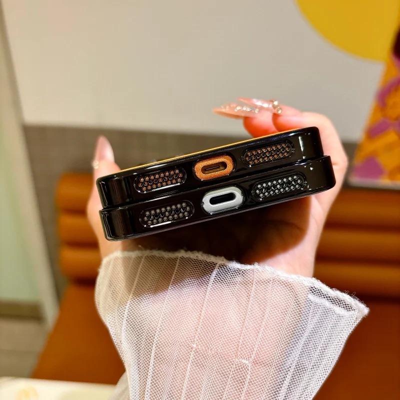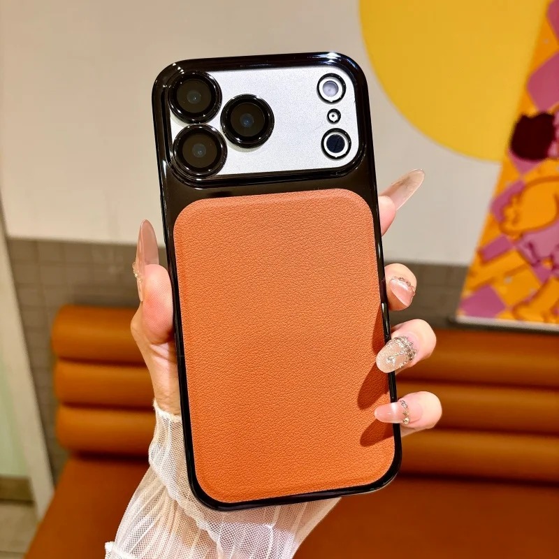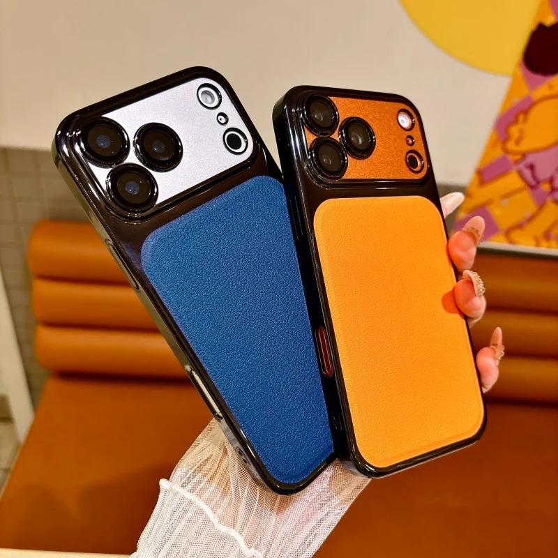 spliced electroplated leather textured  protective case For iPhone